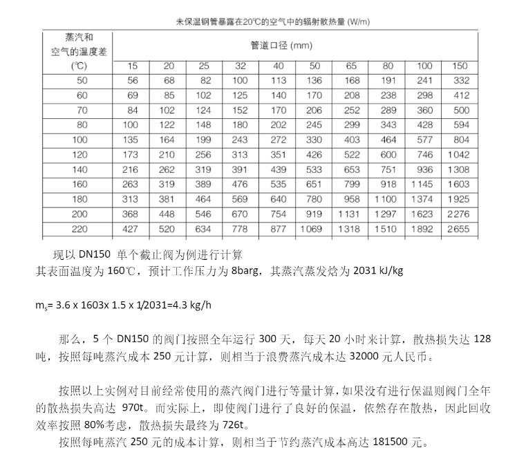 輪胎橡膠、玻璃制品等這些行業(yè)中,蒸汽的能耗降低是企業(yè)競爭優(yōu)勢之一,有時(shí)蒸汽控制的好壞還會(huì)影響生產(chǎn)效率和產(chǎn)品的品質(zhì)。蒸汽閥門的散熱問題是很嚴(yán)重的,我們通過以下公式可以計(jì)算