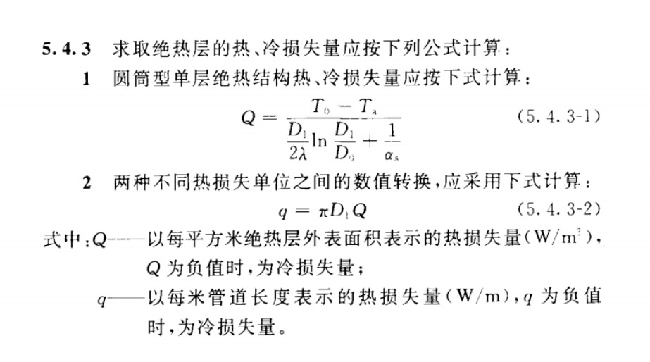 在國標(biāo)文件《工業(yè)設(shè)備及管道絕熱工程設(shè)計(jì)規(guī)范 GB50264-2013》中,規(guī)定了圓筒形單層絕熱結(jié)構(gòu)熱、冷損失量計(jì)算公式: