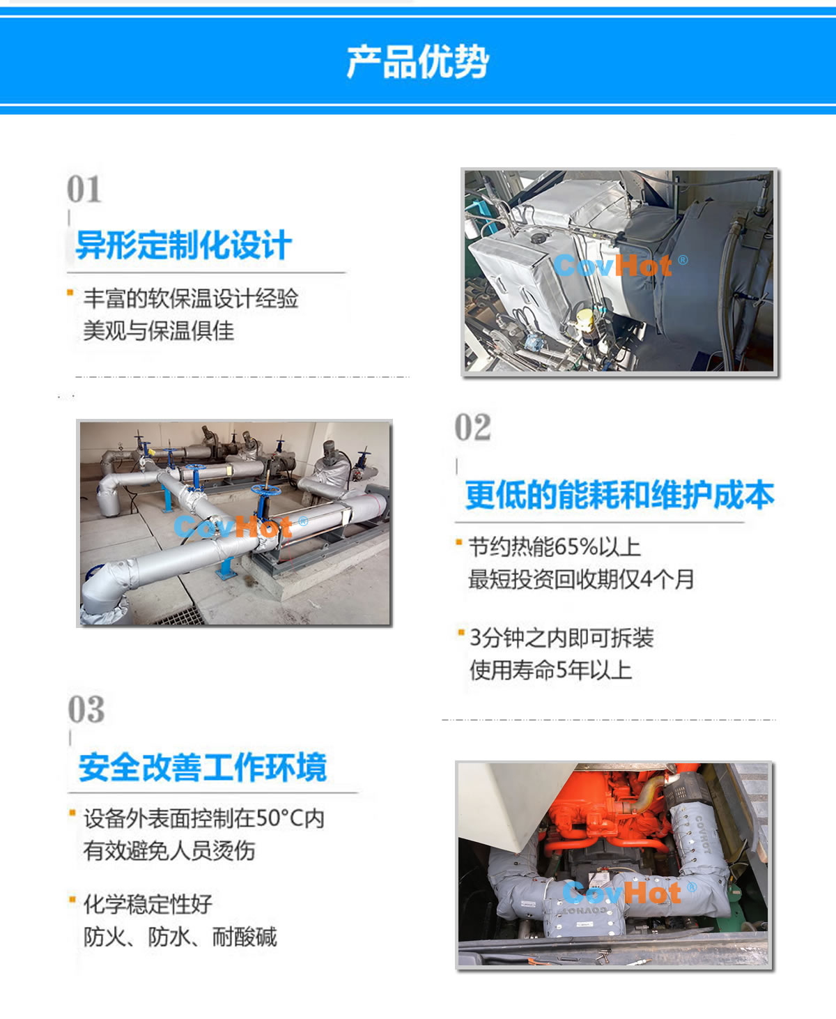 接下來為大家介紹一款非常適合Y型過濾器等異形需頻繁檢修的設(shè)備使用的可拆卸保溫套。可拆卸保溫套,顧名思義,即可以重復(fù)拆卸使用的設(shè)備保溫套,不僅保溫效果顯著,而且非常方便拆裝,無(wú)需專業(yè)人員即可在1分鐘左右完成拆裝,能夠?yàn)檫^濾器的檢修降低時(shí)間投入,從而避免企業(yè)由于檢修緣故反復(fù)做保溫這一難題。
