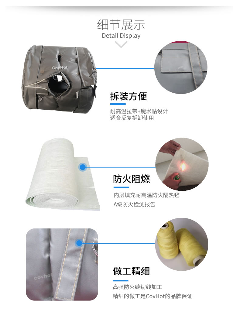 換熱機(jī)組保溫隔熱套采用耐高低溫性能優(yōu)良防火保溫材料;由內(nèi)層、隔熱層、防護(hù)層三層組成,根據(jù)設(shè)備的具體形狀設(shè)計(jì)縫制而成的。近些年越來越受到有設(shè)備保溫隔熱需求用戶的喜愛。