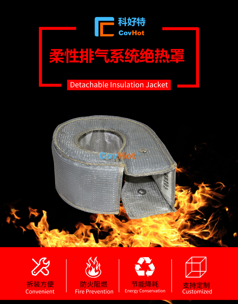 排氣管隔熱套具有易拆裝、可反復(fù)循環(huán)使用等特點,并且具有柔性,可根據(jù)排氣管的形狀,走向設(shè)計制作隔熱套,與排氣管貼合度高,包裹性強。能夠有效解決車輛排氣系統(tǒng)保溫隔熱難題。