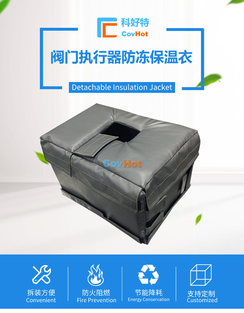 執(zhí)行器防凍保溫套由內隔熱包裹層、中間隔熱保溫層、外隔熱防護層以及電伴熱系統(tǒng)組成,根據各種型號的執(zhí)行器工作環(huán)境、外形尺寸等量身定制而成。