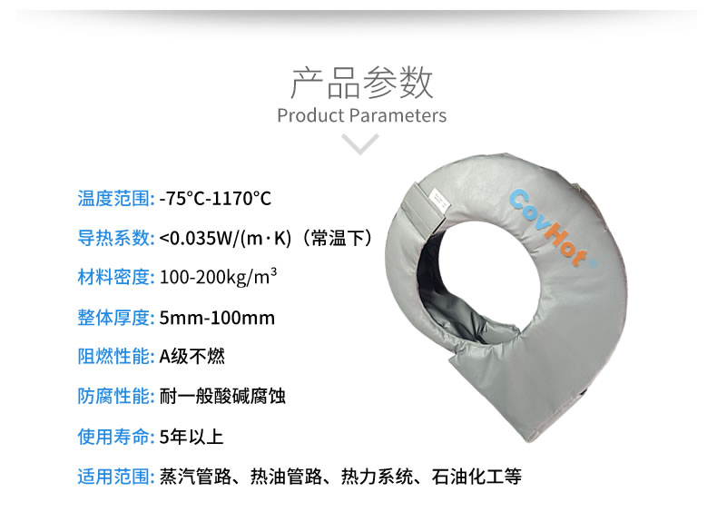 科好特可拆卸式閥門保溫套具有耐高溫、耐油污、絕緣性能好、保溫性優(yōu)、使用壽命長等優(yōu)點,可用在不同溫度、不同形狀的管道和各種冷熱設備的絕熱保溫。對于要經常拆卸、維修保養(yǎng)、清洗的管道設備尤為實用。不僅可以改善員工的工作環(huán)境、有效降低室內溫度,還防止人員燙傷,提高企業(yè)安全和平穩(wěn)生產水平。