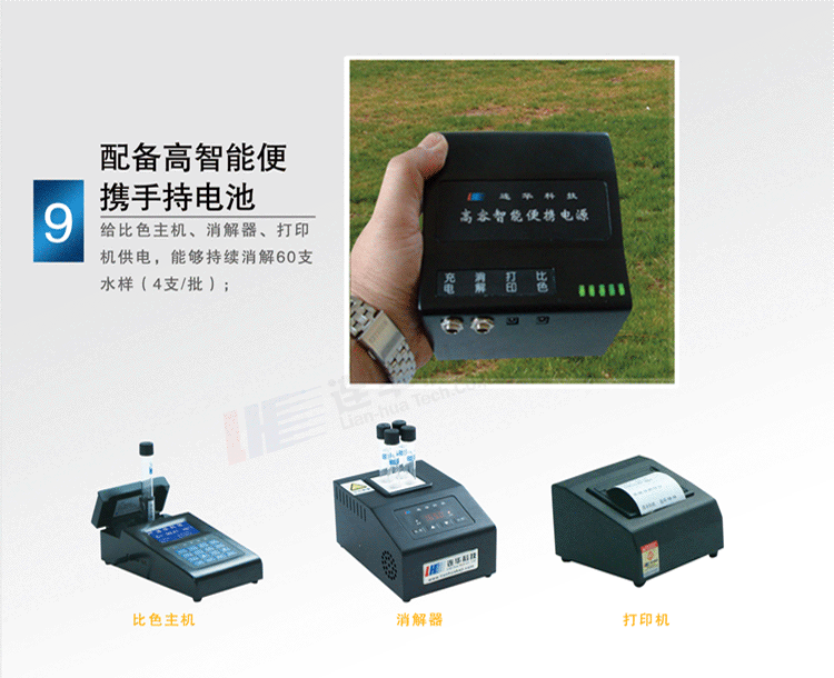 (05) 可顯示電量的大容量高能鋰動力電池,滿足大批量的水樣測定;
